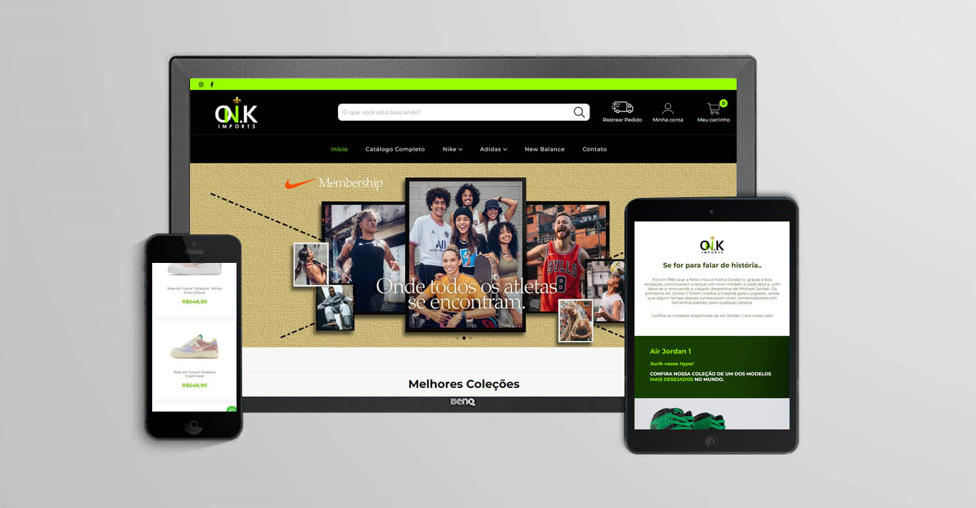 Foi desenvolvida a identidade visual da loja Onk Imports. Adequando o layout da nuvemshop as exigências e espectativas do cliente.