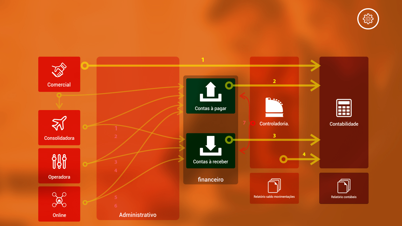 Utilização de iconografia para a discriminação dos vários processos e atividades ali retratadas. Mantendo características de cada setor para sua melhor compreensão.
