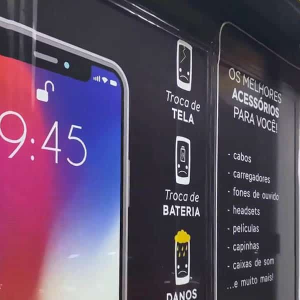 Foram produzidos todos os adesivos que decoram a sinalização da loja: