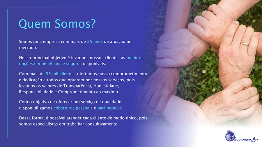 Desenvolvimento de apresentação comercial para prospecção de novos clientes Sudaprev.