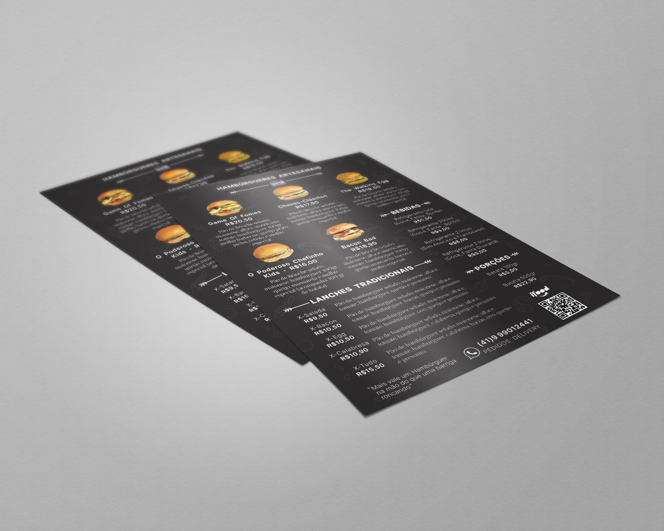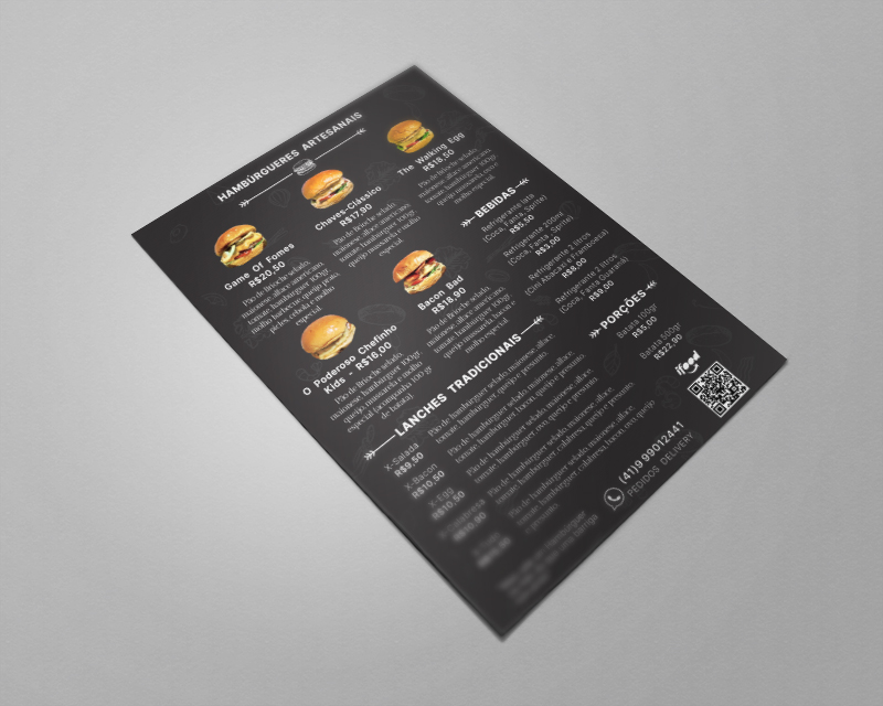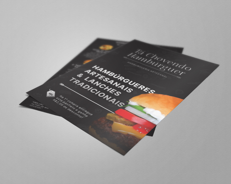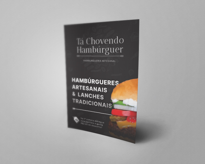 Desenvolvimento de material impresso flyer/cardápio para divulgação dos produtos e serviços da empresa Ta chovendo hamburguer.